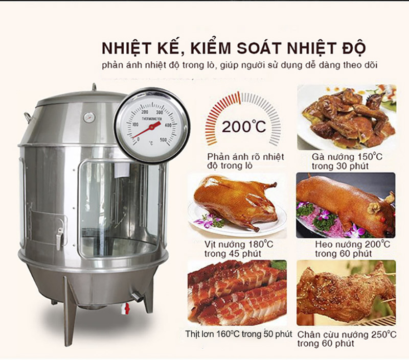 Lý do nên chọn Lò Quay Gà Vịt Phi 80 Có Kính Dùng Gas
