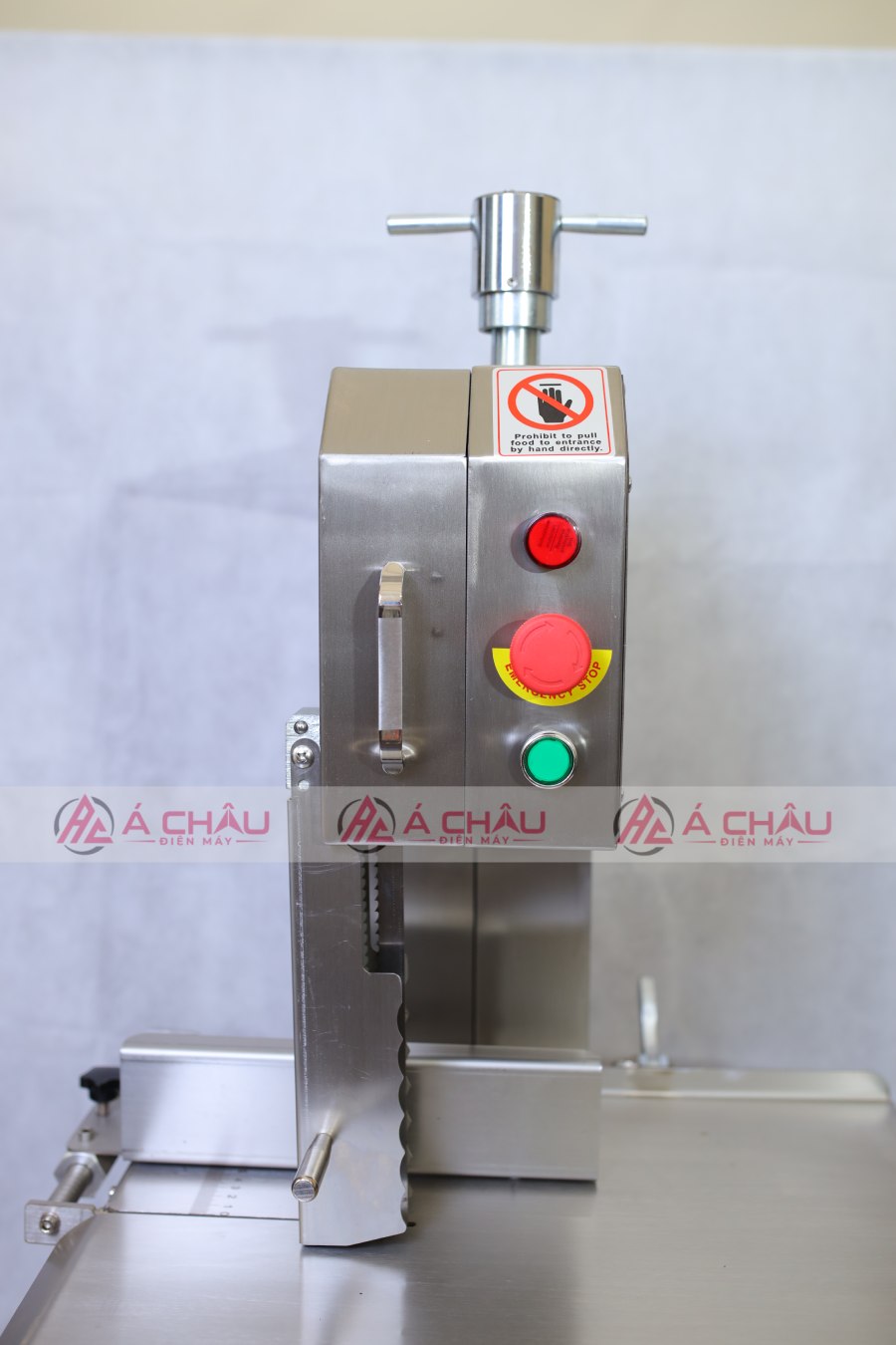 Máy được nhập khẩu nguyên chiếc, nên vận hành khá đơn giản. Điều chỉnh kích thước cắt mong muốn -> Cắm điện -> bật công tắc nguồn -> đặt thực phẩm cần cắt lên bàn cắt -> dùng cần gạt để đẩy thịt vào lưỡi cưa và cắt =>> Cứ thế tiến hành cắt thôi.