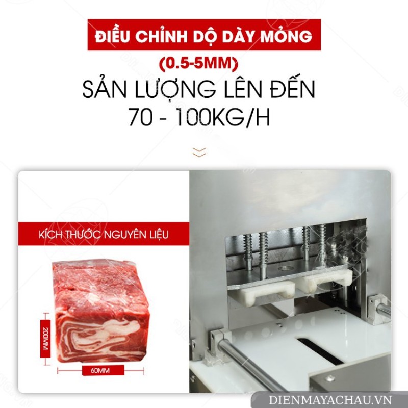 Năng suất cao, khả năng thái vượt trội, đa dạng, máy thái thịt tự động QH-02 đang hội tụ rất nhiều ưu điểm và là loại máy cắt thịt vô cùng phù hợp với các nhà hàng lớn, các xí nghiệp, cơ sở chế biến thịt.