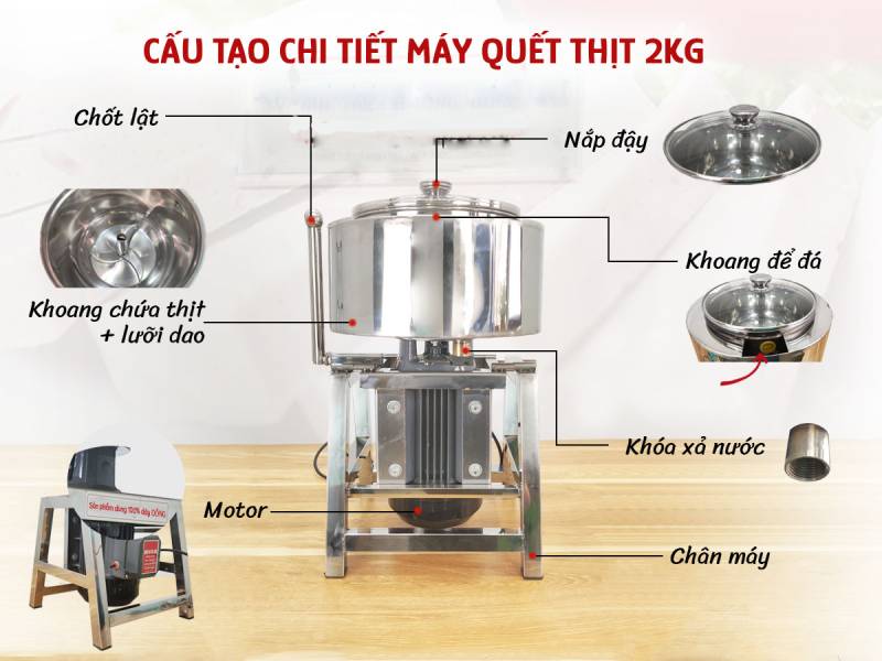 Với kích thước vừa phải, máy xay giò chả mini 2kg dễ dàng bố trí trong nhà bếp hoặc cơ sở nhỏ. Thiết kế chống rung, có nắp kính quan sát, dễ vận hành, phù hợp với mọi đối tượng sử dụng.